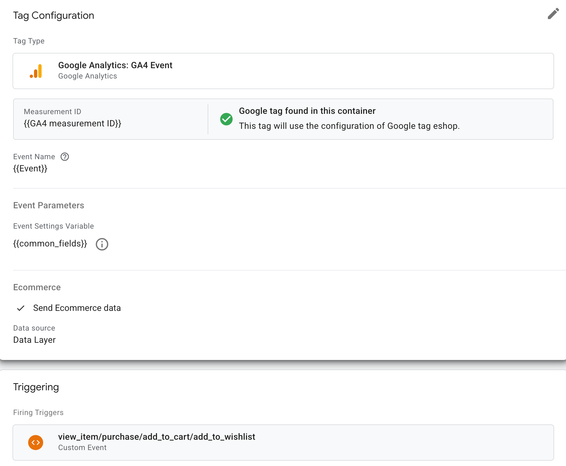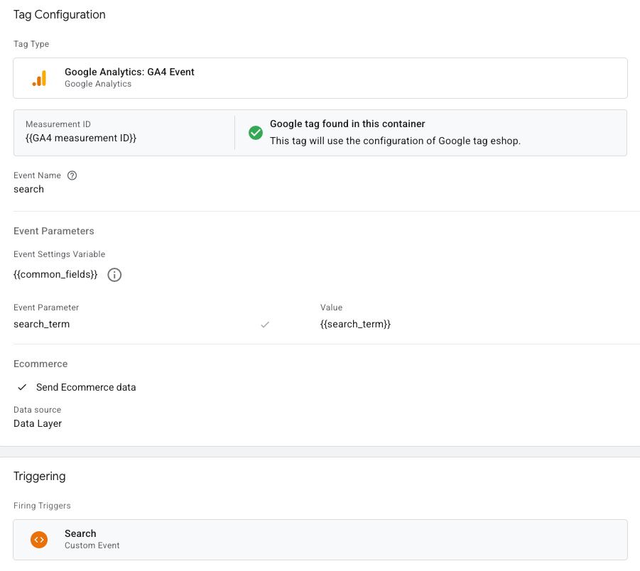 Google Analytics Ecommerce is an additional configuration for Google Analytics that passes product titles, IDs, prices, transaction details, and other structured ecommerce data to Google Analytics. MCM can leverage the Google Analytics Ecommerce data layer, so if you have that set up already, configuration can be easier. If you don't have Google Analytics Ecommerce configured for Google Analytics but want to use it, see more details and setup instructions in the GA4 developer guide