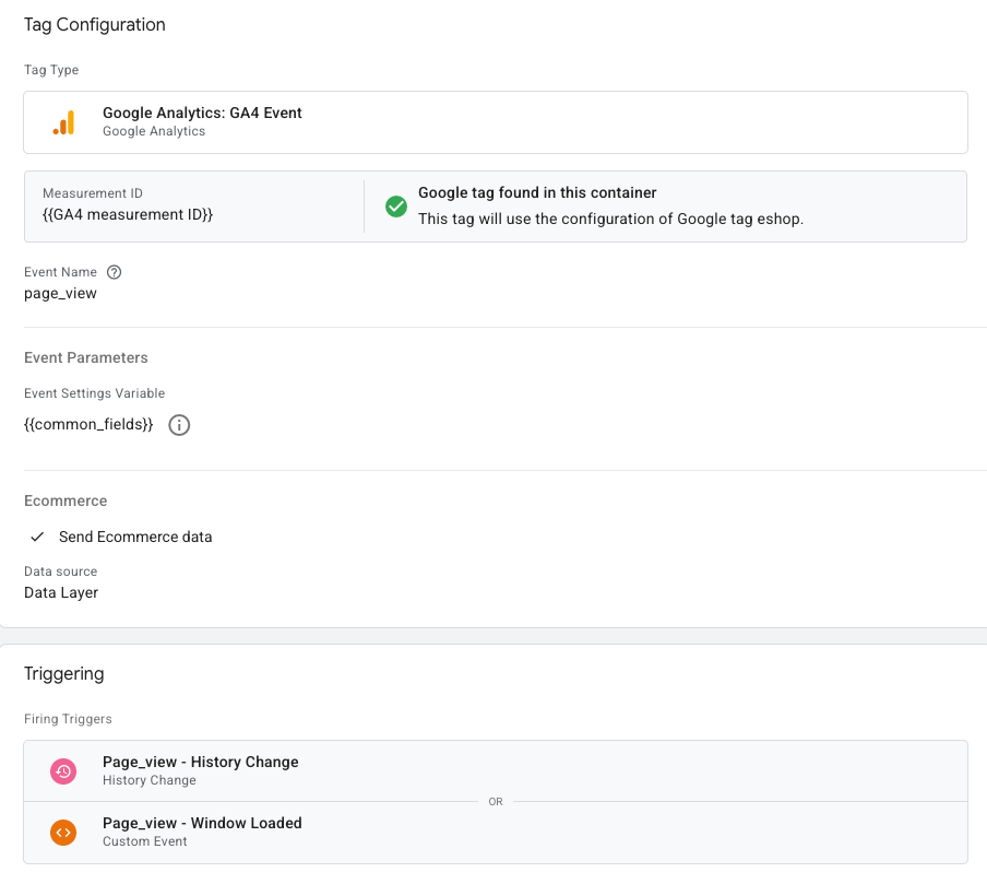 Tag Manager provides a way to manage and test multiple tags without many server-side code changes to your site. Some decisions you make during setup depend on whether you are using Google Analytics and Google Analytics Ecommerce. Google Analytics Ecommerce can be implemented using Google Analytics 4 or Enhanced Ecommerce. Neither Google Analytics nor Google Analytics Ecommerce is required; if you don't use them, you can manually populate your site's data layer code after creating the tag.
